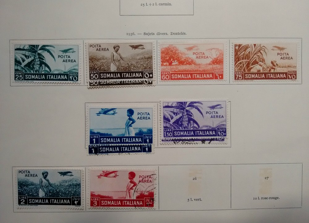 COLONIAS ITALIANAS SOMALIA + OLTRE GIUBA 1906/36 ANTIGUA COLECCION CON BUENA CANTIDAD DE RAROS SELLOS DE MEDIANO VALOR HAY ALGUNAS SERIES COMPLETAS Y SEGURAMENTE EL GRUESO SERA BIEN APROVECHADO SON 562 EUROS. BELLISIMO CONJUNTO IMPERDIBLE !!!!