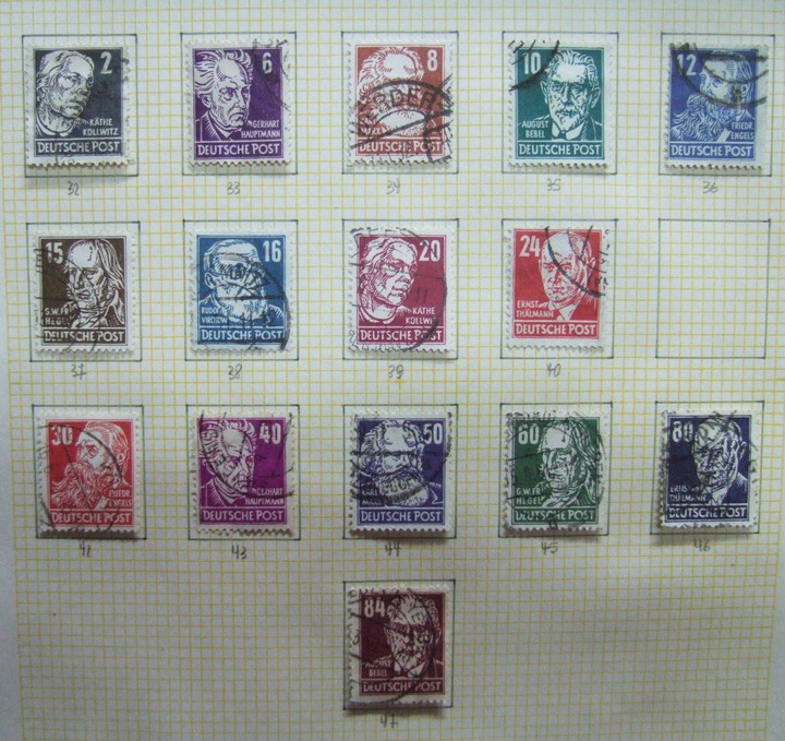 ALEMANIA ORIENTAL 1948/1989 COLECCION MUY AVANZADA, EN ALBUM CON MUY BUENAS ESTAMPILLAS, MUCHAS SERIES COMPLETAS. UNA ESPLENDIDA BASE PARA CONTINUAR, SOBRESALE LA EXCELENTE CALIDAD DE LAS ESTAMPILLAS. HAY + DE 3865 FRANCOS = 589 EUROS, EXCELENTE OFERTA