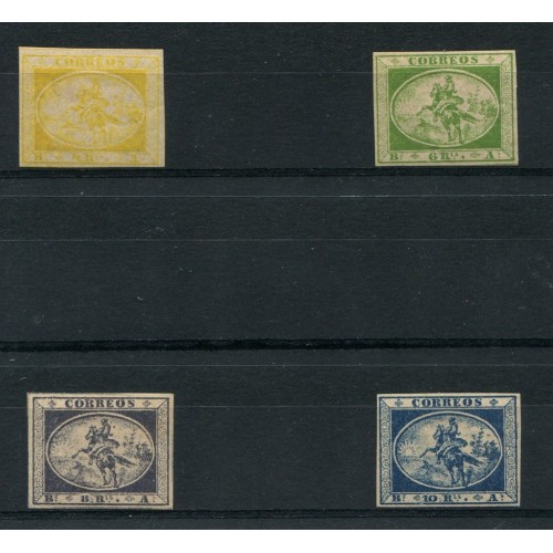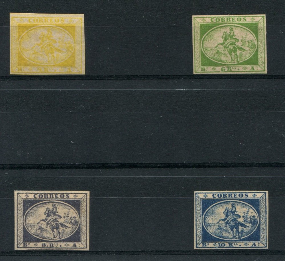 ARGENTINA 1857 GJ 1/4 BUENOS AIRES SERIE COMPLETA DE GAUCHITOS NUEVA CON GOMA Y DE HERMOSA CONDICION, TODOS CON FIRMA DE DON VICTOR KNEITSCHEL U$ 480
