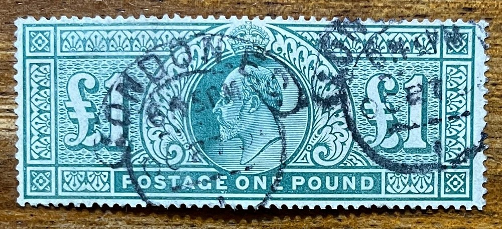 INGLATERRA 1902 Yv. 121 LA LIBRA VERDE DE EDUARDO VII, ESTAMPILLA USADA VALOR FINAL DE LA SERIE HERMOSA CALIDAD DE LUJO 700 €