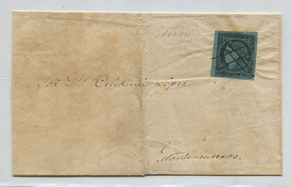 ARGENTINA 1856 GJ 1 CORRIENTES CARTA PLIEGO CIRCULADO A MONTE CACEROS CON LA PRIMER ESTAMPILLA ARGENTINA U$ 450