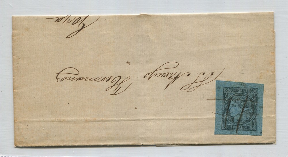 ARGENTINA 1856 GJ 1 CORRIENTES CARTA PLIEGO CIRCULADO A GOYA CON LA PRIMER ESTAMPILLA ARGENTINA, HERMOSA PIEZA U$ 450