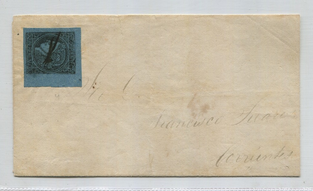 ARGENTINA 1856 GJ 1c CORRIENTES CARTA PLIEGO CIRCULADO A LA CAPITAL, MUY BONITA PIEZA RARA U$ 800