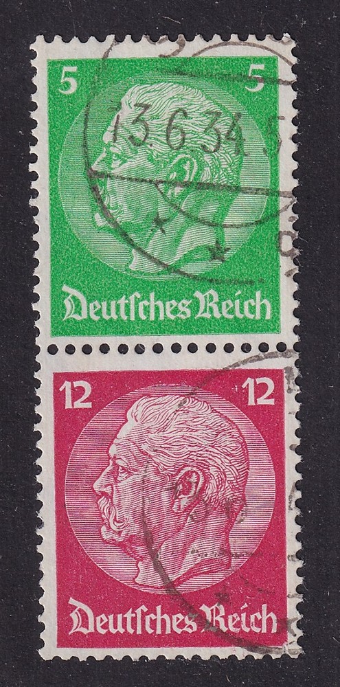 ALEMANIA 1933 ESTAMPILLAS SE-TENANT ZUSAMMENDRUCKE USADOS QUE ES MUCHO MAS ESCASO MI S106 FILIGRANA HEXAGONOS 20 €
