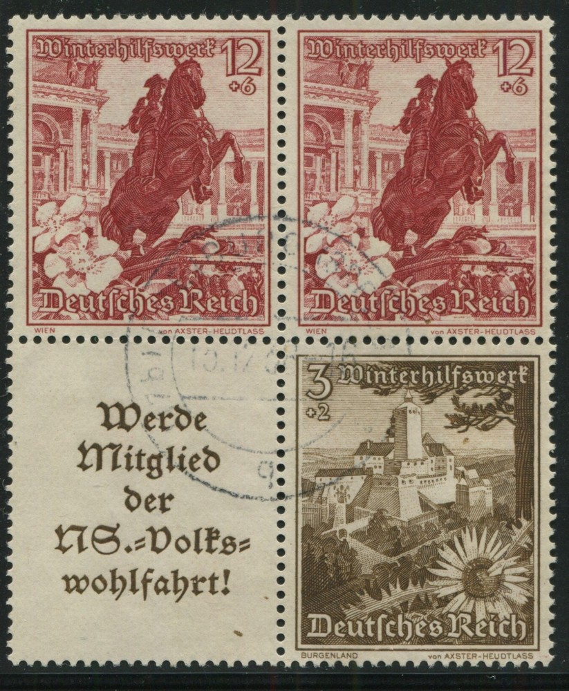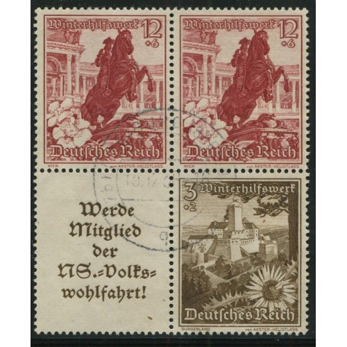 ALEMANIA 1938 ESTAMPILLAS SE-TENANT ZUSAMMENDRUCKE USADAS QUE SON MUCHO MAS ESCASAS MI S255 y S249 EN CUADRO, RARO