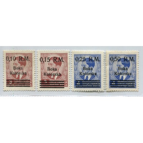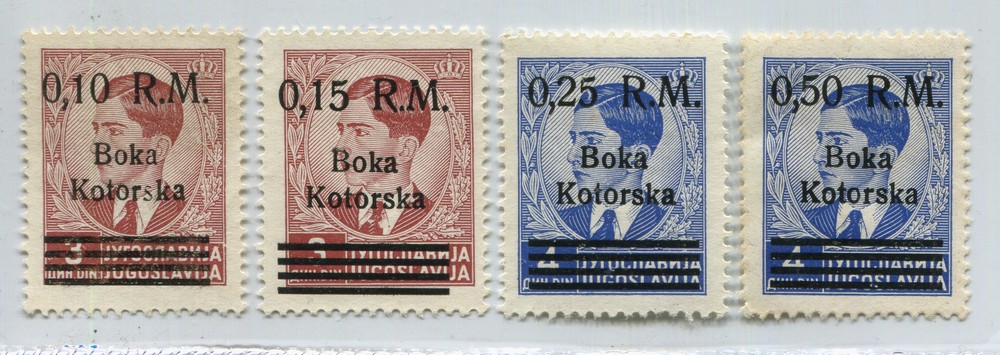 ALEMANIA EN YUGOSLAVIA COLONIAS ITALIANAS OCUPACION ALEMANA ITALIANA EN KOTOR CROACIA YUGOSLAVIA 1944 SASSONE Nº 7/10 MICHEL 7/10 SERIE COMPLETA DE ESTAMPILLAS NUEVAS SIN GOMA, RARAS 130 EUROS PARA CON GOMA