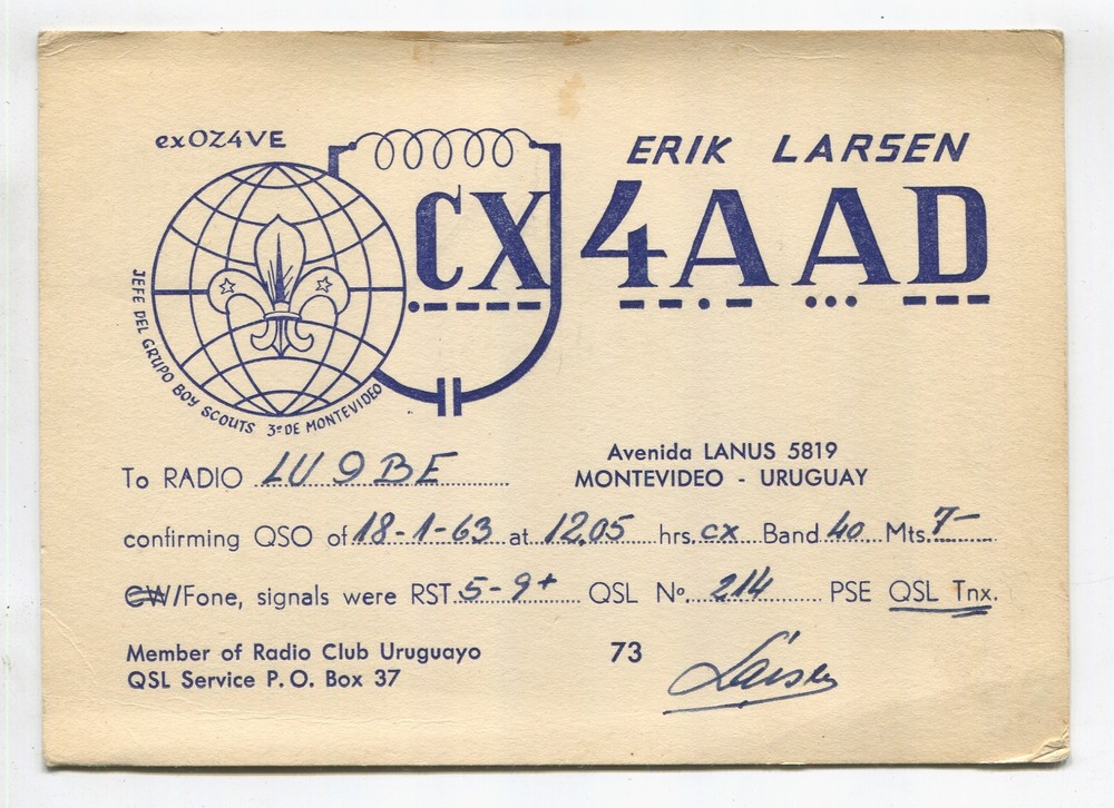 BOY SCOUT TARJETA QSL URUGUAY SCOUTS 1963 CIRCULADA RARA