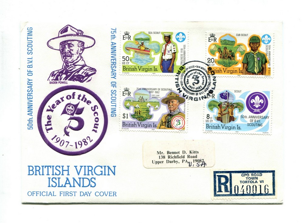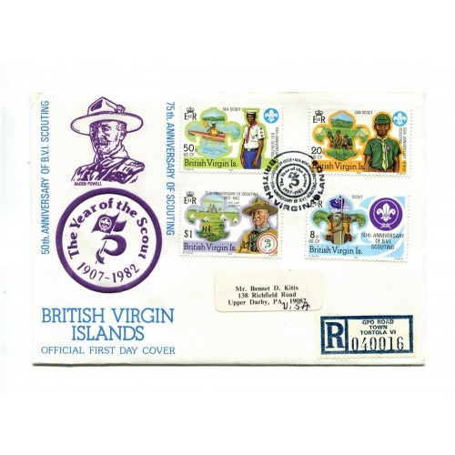 BOY SCOUT ISLAS VIRGENES 1982 SOBRE CON MATASELLO SCOUTS CORREO CERTIFICADO