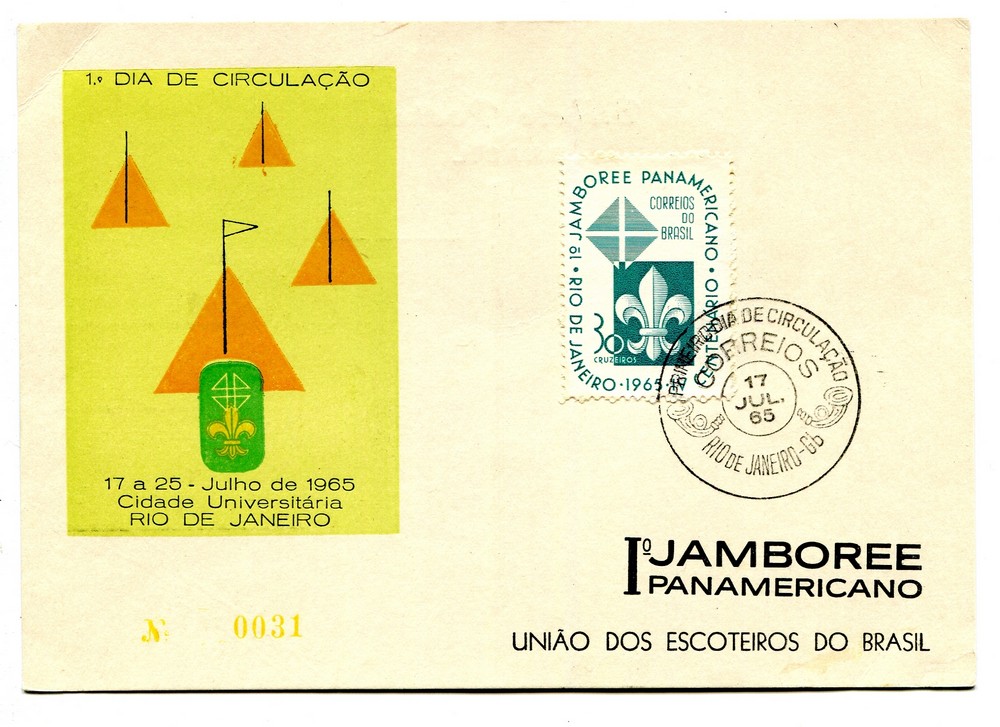 BOY SCOUT BRASIL 1965 TARJETA CON MATASELLO SCOUTS