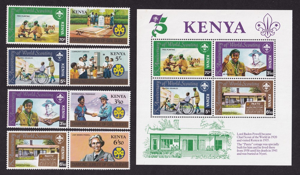 BOY SCOUTS KENYA SERIE COMPLETA + HOJA BLOQUE NUEVA MINT SCOUT