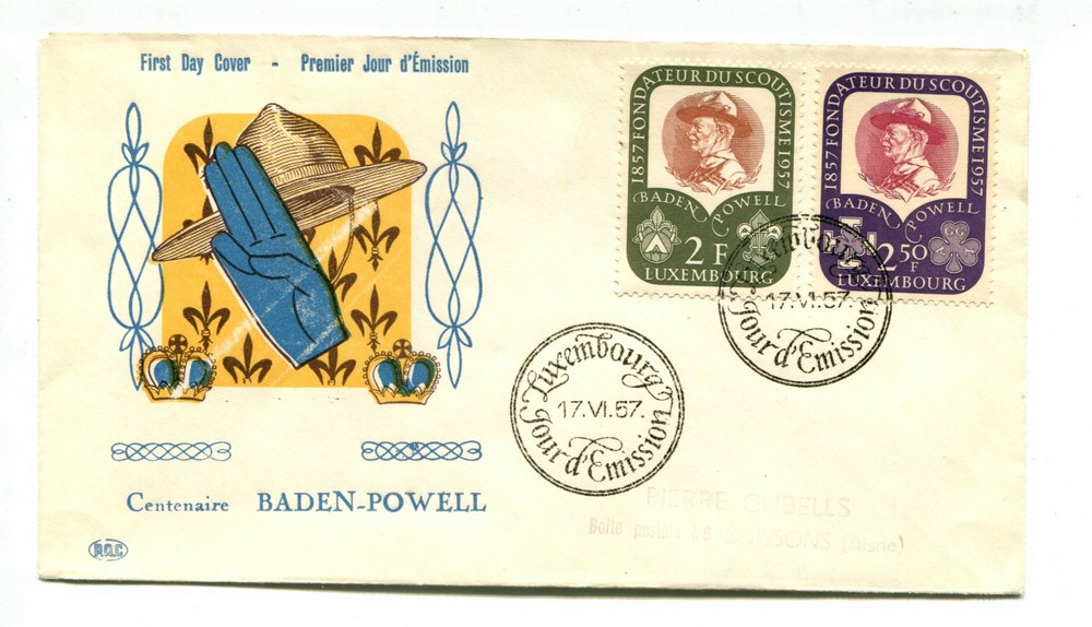 BOY SCOUT LUXEMBURGO 1957 SOBRE ILUSTRADO CON MATASELLO SCOUTS