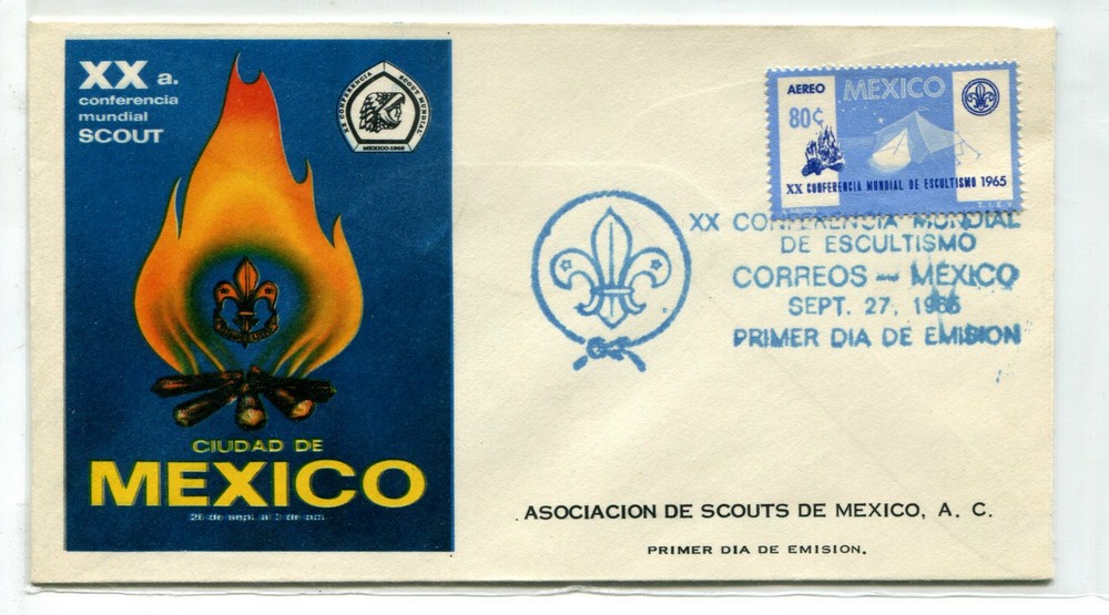 BOY SCOUT MEXICO 1965 SOBRE ILUSTRADO CON MATASELLO SCOUTS