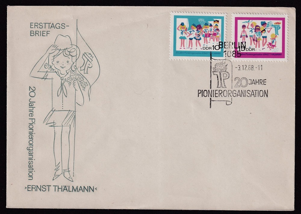 PIONEROS ALEMANIA ORIENTAL DDR 1968 SOBRE CON ESTAMPILLAS ORGANIZACIÓN SIMIL BOY SCOUT