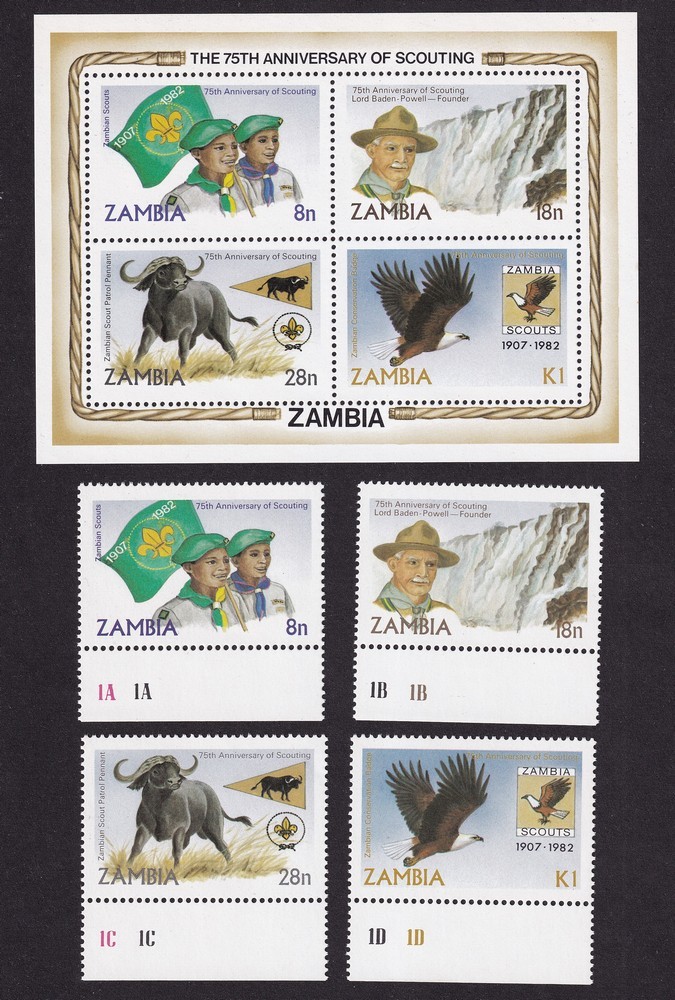 BOY SCOUTS ZAMBIA SERIE COMPLETA + HOJA BLOQUE NUEVA MINT SCOUT