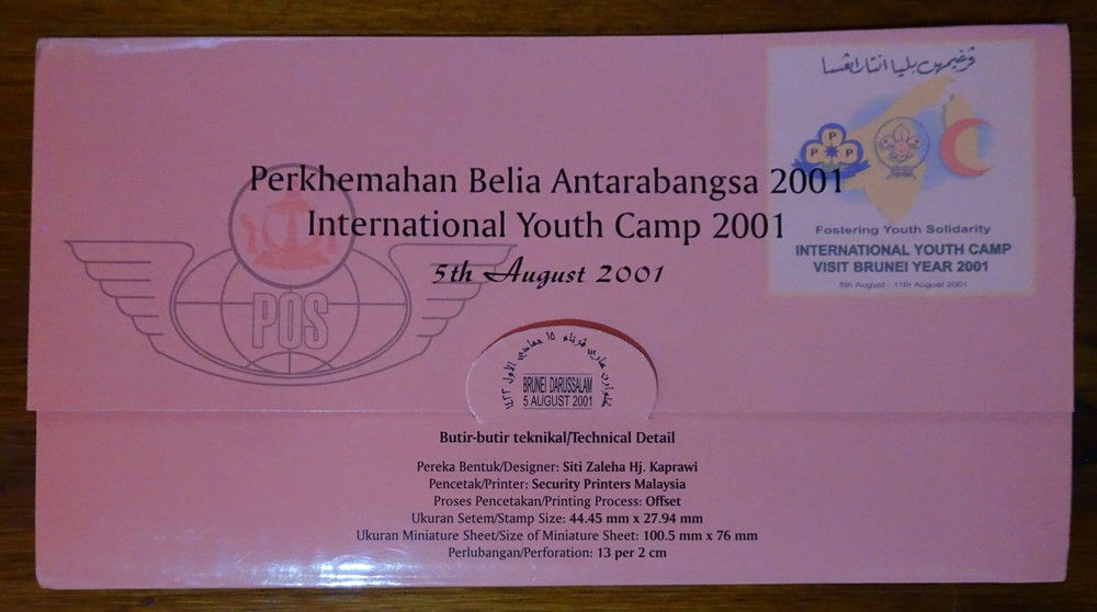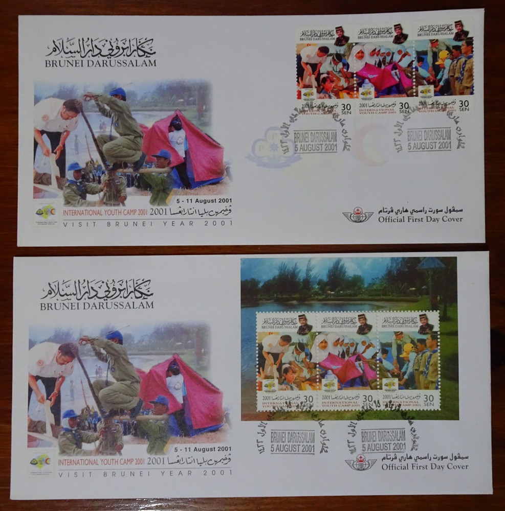 BOY SCOUTS BRUNEI PACK ESPECIAL CON SERIE COMPLETA Y HOJA BLOQUE EN SOBRES PRIMER DIA SCOUT