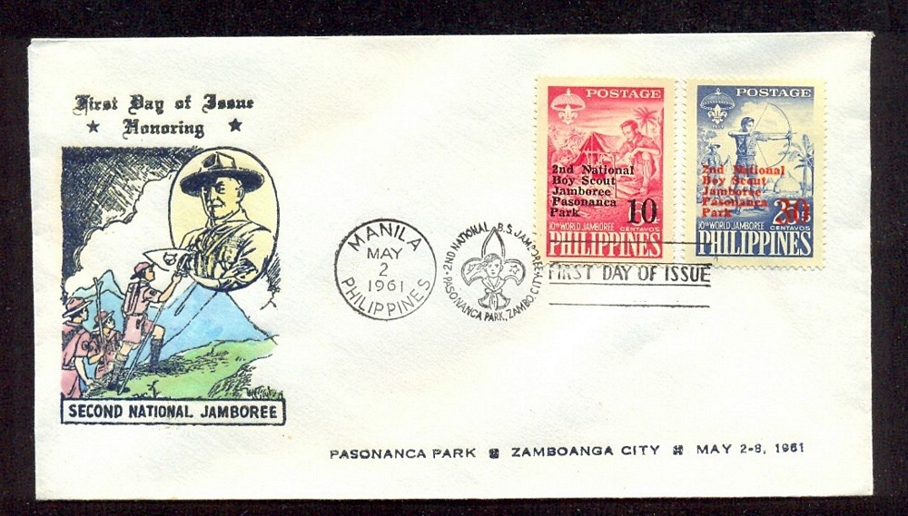 BOY SCOUT FILIPINAS 1961 SOBRE CON MATASELLO SCOUTS Y SERIE RESELLADA