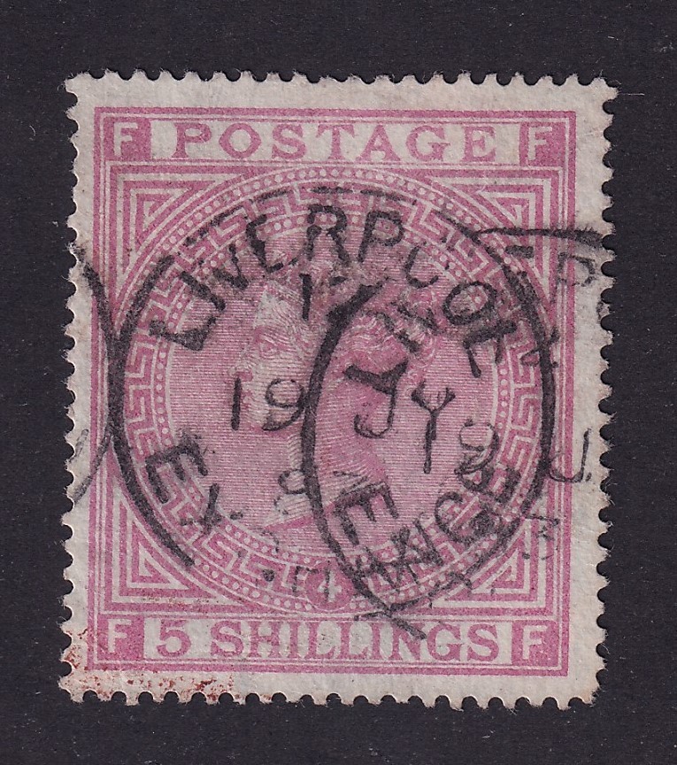 INGLATERRA 1867 Yv. 43 EL 5 SHILLINGS VICTORIA FILIGRANA ANCLA, ESTAMPILLA USADA VALOR ALTO DE LA SERIE HERMOSA CALIDAD 4.300 € SG 130 rarisima 4.000 LIBRAS