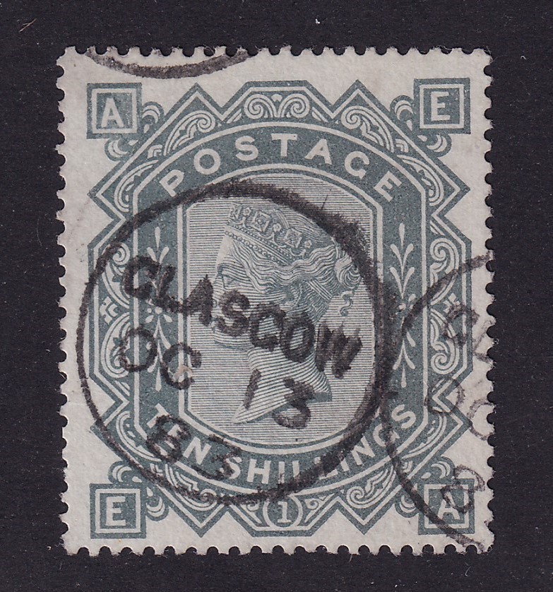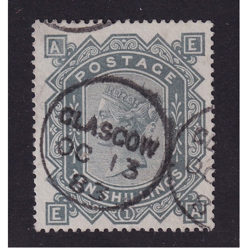 INGLATERRA 1867 Yv. 44 EL 10 SHILLINGS VICTORIA FILIGRANA ANCLA, ESTAMPILLA USADA VALOR ALTO DE LA SERIE HERMOSA CALIDAD MATASELLO GLASGOW ESCOCIA DE LUJO 4.800 € SG 131 rarisima 4.500 LIBRAS