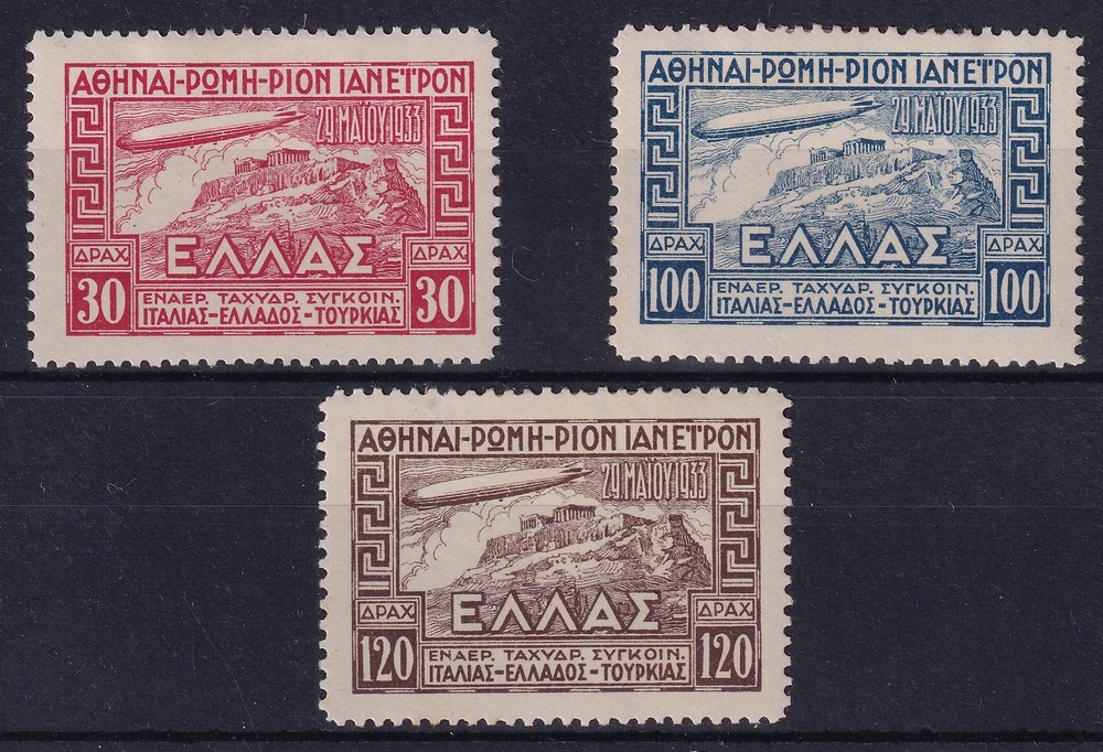 GRECIA 1933 Yv AEREO 5/7 ZEPPELIN SERIE COMPLETA NUEVA CON GOMA 210 €