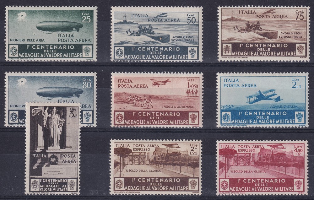 ITALIA 1934 Yv AEREO 69/77 SERIE COMPLETA DE ESTAMPILLAS NUEVAS MINT 150 €