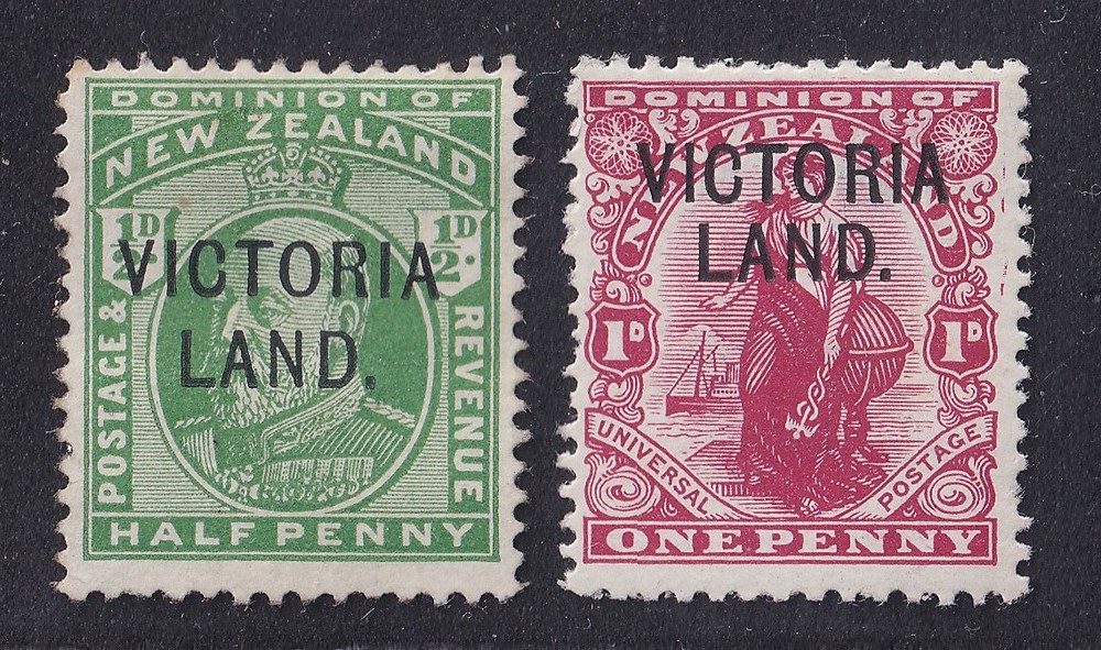 NUEVA ZELANDA, VICTORIA LAND 1911 Yv 1/2 SERIE COMPLETA DE ESTAMPILLAS NUEVAS CON GOMA ANTARTIDA MUY RARAS 880 €
