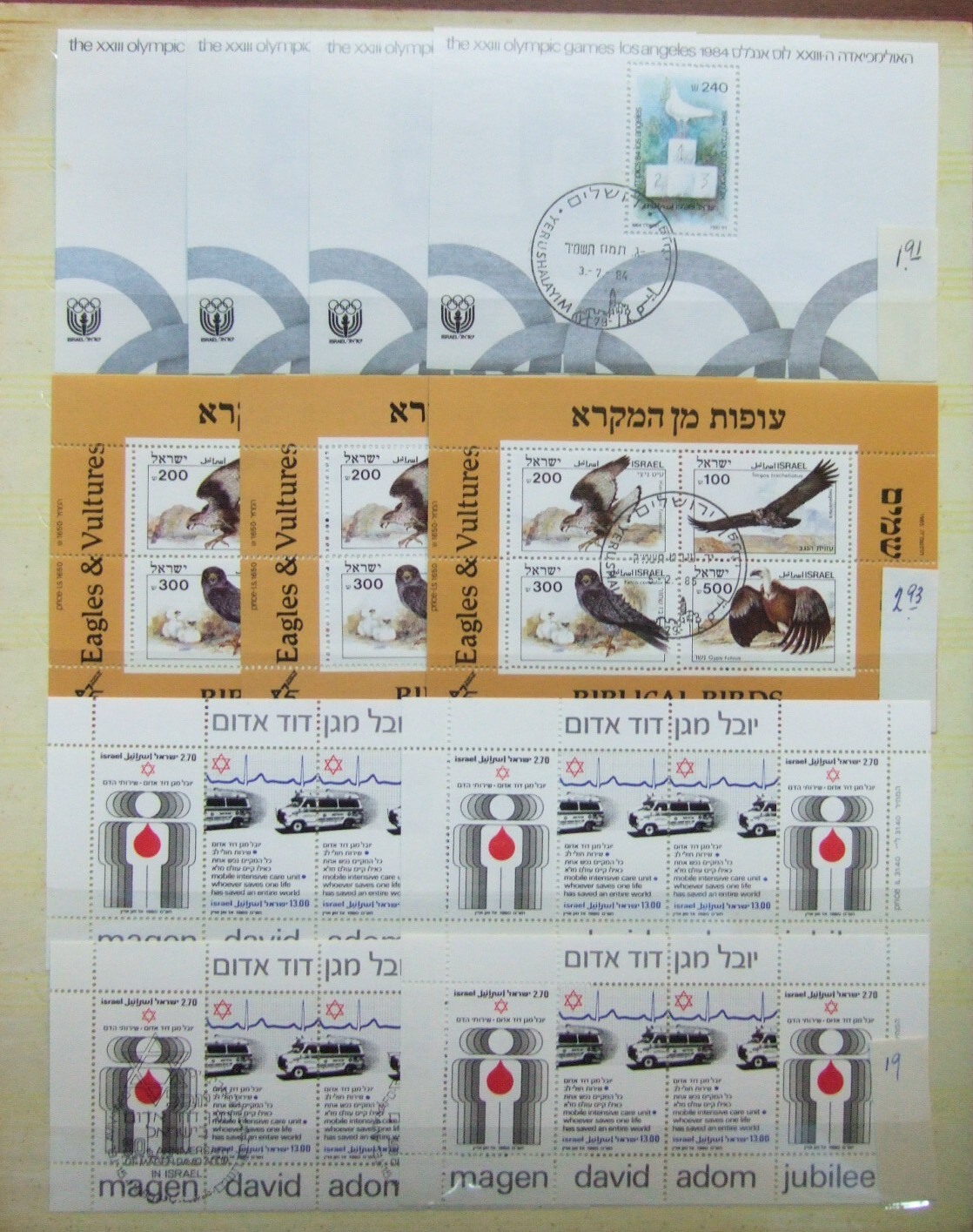 ISRAEL COLECCION DE BLOQUES Y HOJAS CON ESTAMPILLAS COMBINADAS MUCHÍSIMO MATERIAL MINT, GRAN CANTIDAD DE SELLOS Y MUY BUEN VALOR