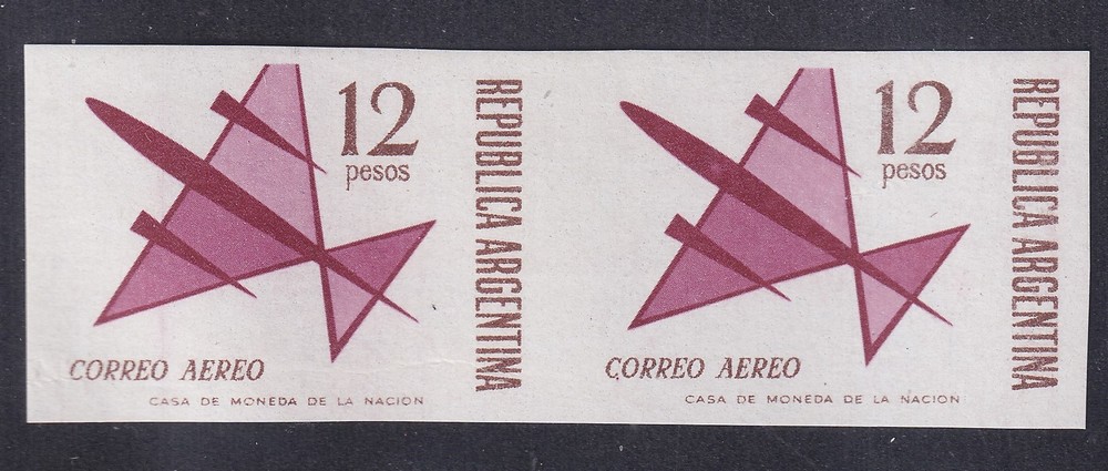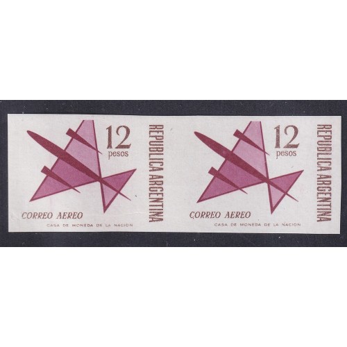 ARGENTINA 1965 GJ 1337P ESTAMPILLAS CON VARIEDAD PAREJA SIN DENTAR NUEVA CON GOMA U$ 75