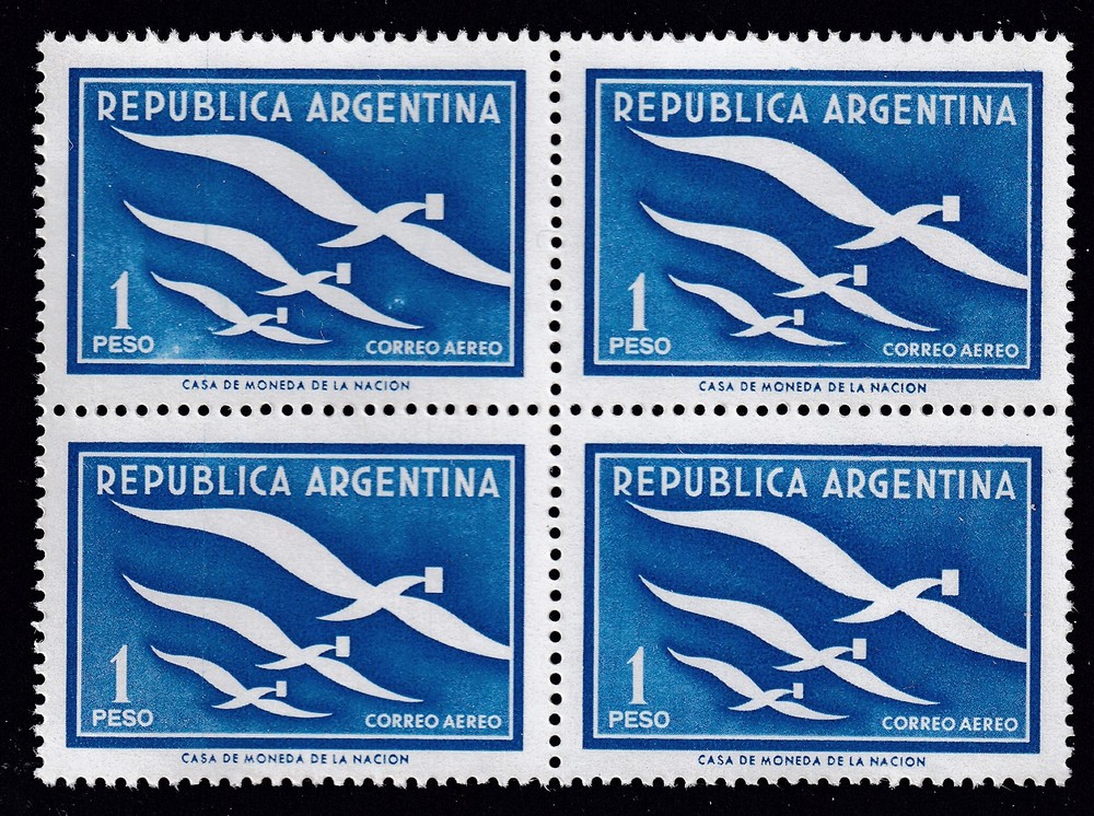 ARGENTINA 1957 GJ 1089 CUADRO DE ESTAMPILLAS NUEVAS MINT CON VARIEDAD NO CATALOGADA EN EL PRIMER SELLO