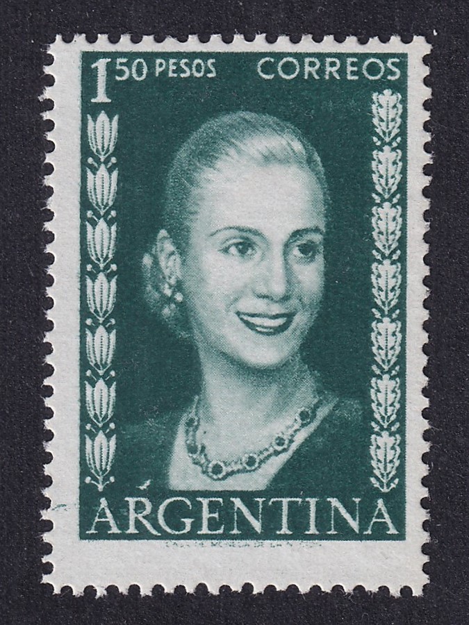 ARGENTINA 1952 GJ 1012a EVA PERON ESTAMPILLA NUEVA CON GOMA TONALIZADA EVITA VARIEDAD CATALOGADA U$ 25
