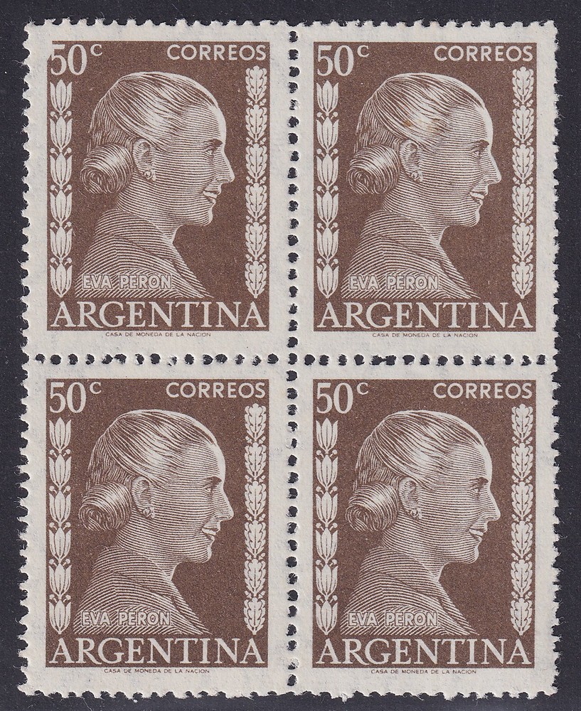 ARGENTINA 1952 GJ 1010c EVITA ESTAMPILLA EVA PERON CON VARIEDAD CATALOGADA NUEVA MINT U$ 15
