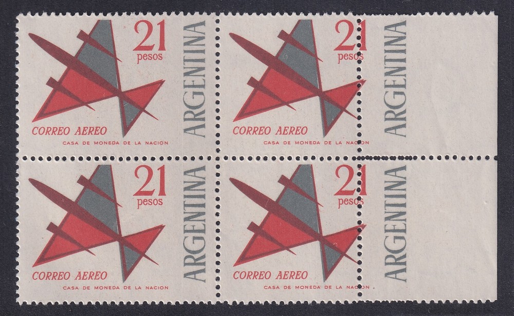 ARGENTINA 1963 GJ 1256 CUADRO DE ESTAMPILLAS NUEVAS MINT CON VARIEDAD DENTADO MUY DESPLAZADO