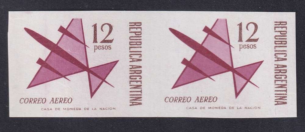 ARGENTINA 1965 GJ 1337P ESTAMPILLAS CON VARIEDAD PAREJA SIN DENTAR NUEVA MINT U$ 75