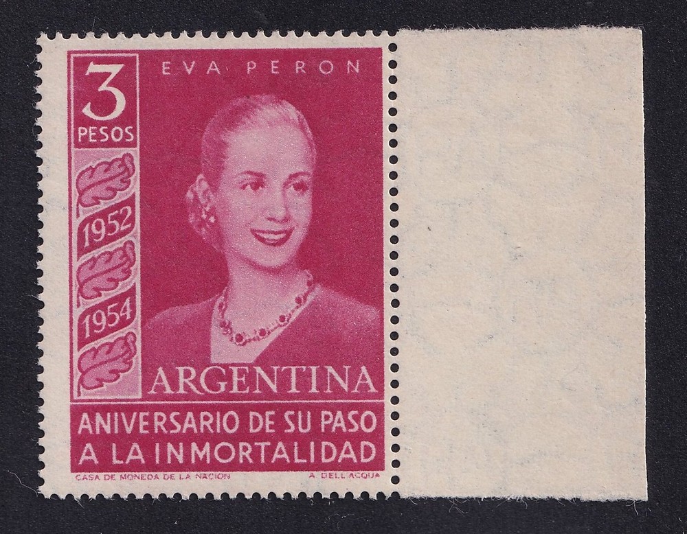 ARGENTINA 1954 GJ 1030a EVA PERON EVITA ESTAMPILLA NUEVA MINT PAPEL MATE IMPORTADO BLANCO U$ 170