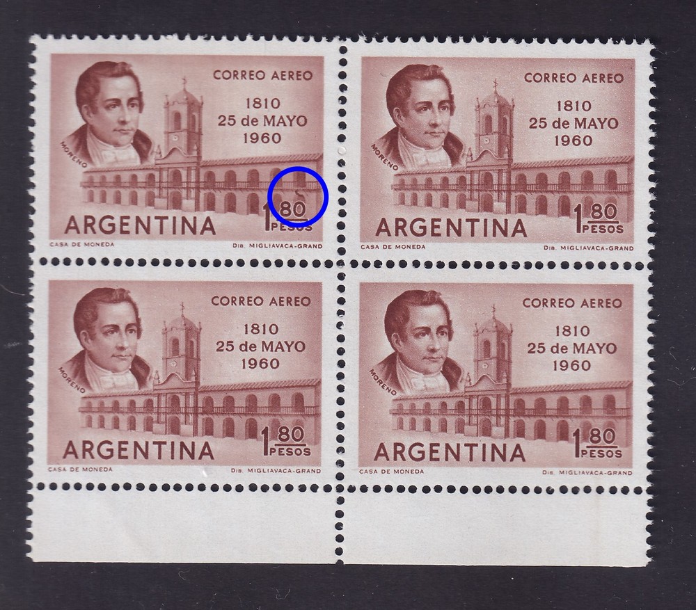 ARGENTINA 1960 GJ 1170a CUADRO DE ESTAMPILLAS NUEVAS MINT CON VARIEDAD CATALOGADA U$ 15