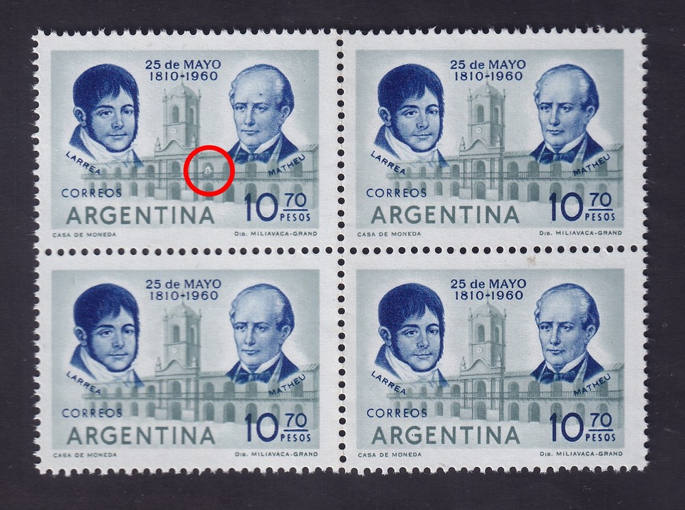 ARGENTINA 1960 GJ 1174a CUADRO DE ESTAMPILLAS NUEVAS MINT CON VARIEDAD CATALOGADA U$ 15