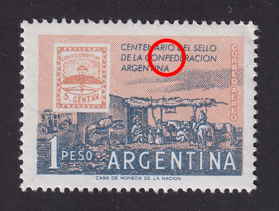 ARGENTINA 1958 GJ 1109a ESTAMPILLA NUEVA MINT CON VARIEDAD SEÑALADA U$ 15