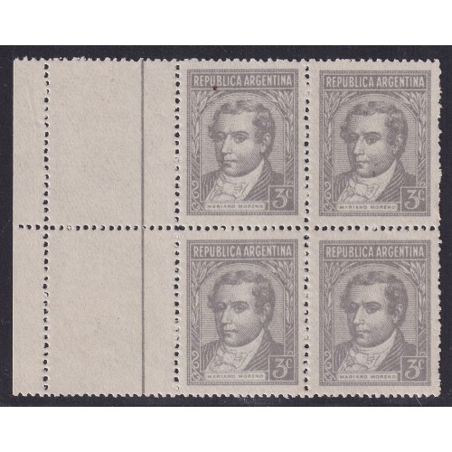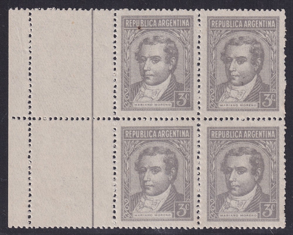 ARGENTINA 1942 GJ 889 CUADRO DE ESTAMPILLAS NUEVAS MINT CON COMPLEMENTOS IZQUIERDOS CON LINEAS DE COLOR NO CATALOGADO