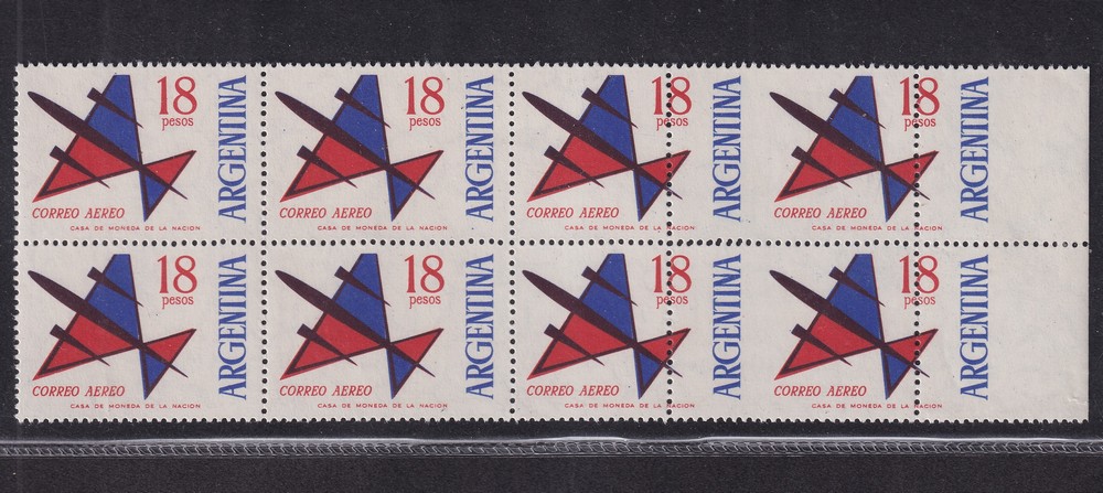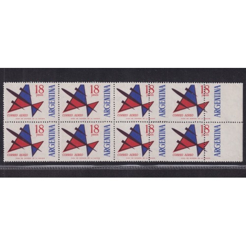 ARGENTINA 1963 GJ 1255 BLOQUE DE 8 ESTAMPILLAS NUEVAS MINT CON VARIEDAD DENTADO MUY DESPLAZADO