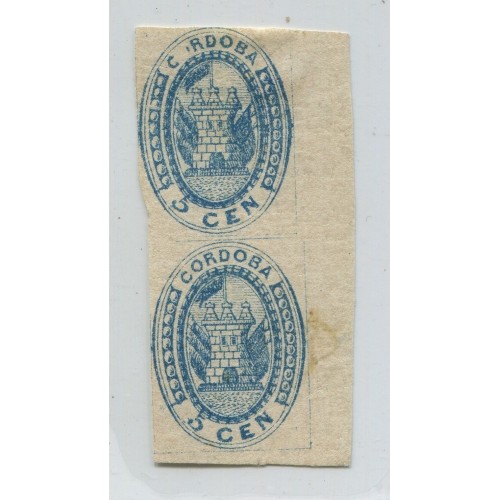 ARGENTINA 1858 GJ 1+1b CORDOBA PAREJA VERTICAL DE ESTAMPILLAS, POSICIONES 20 Y 30 DE LA PLANCHA, NUEVA SIN GOMA CON LA VARIEDAD " C_RDOBA " U$ 400