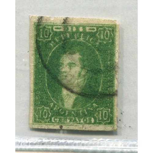 ARGENTINA 1864 GJ 23e RIVADAVIA de 10 Cts ESTAMPILLA DE IMPRESIÓN BORROSA VARIEDAD PAPEL MUY DURO ACARTONADO, MUY RARO U$ 95