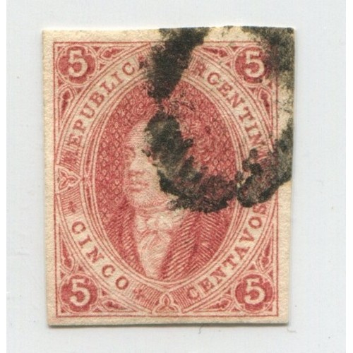 ARGENTINA 1864 GJ 16 PE 8 RIVADAVIA DE PRIMERA TIRADA SIN DENTAR SUPER NITIDO, DE AMPLIOS MARGENES SU CALIDAD ES DE LUJO U$ 300 Y CON MATASELLO PONCHITO + 300%