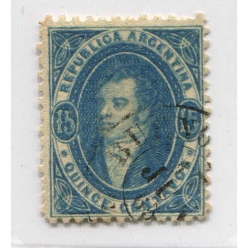 ARGENTINA 1864 GJ 24 RIVADAVIA 15 Cts. IMPRESIÓN SEMINITIDA MAGNIFICA CALIDAD MATASELLO 17/6/65 U$ 70