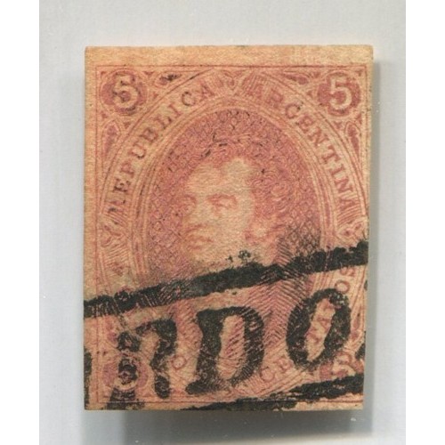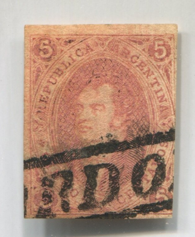 ARGENTINA 1867 GJ 27b RIVADAVIA 6ta SIN DENTAR VARIEDAD PLANCHA RAYADA, VARIEDAD FALTA PERLA ARRIBA DEL ADORNO ENTRE REPUBLICA Y ARGENTINA CON FILIGRANA RAYA HERMOSA U$ 400