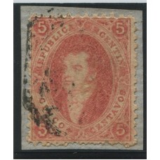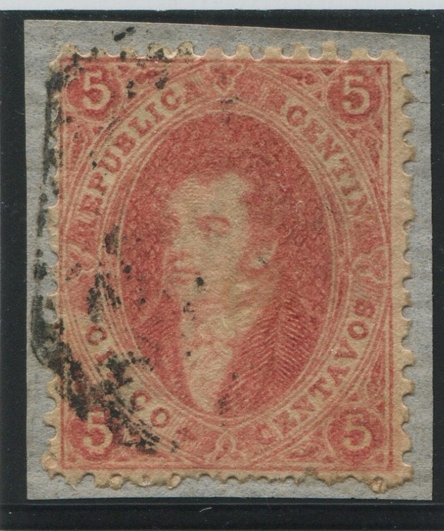 ARGENTINA 1864 GJ 19 RIVADAVIA ESTAMPILLA DE 1ra TIRADA EN FRAGMENTO MUY LINDA PIEZA