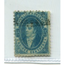 ARGENTINA 1864 GJ 22 RIVADAVIA DE 15 Cts. IMPRESIÓN NITIDA ESTAMPILLA CON DENTADO COMPLETO U$ 180