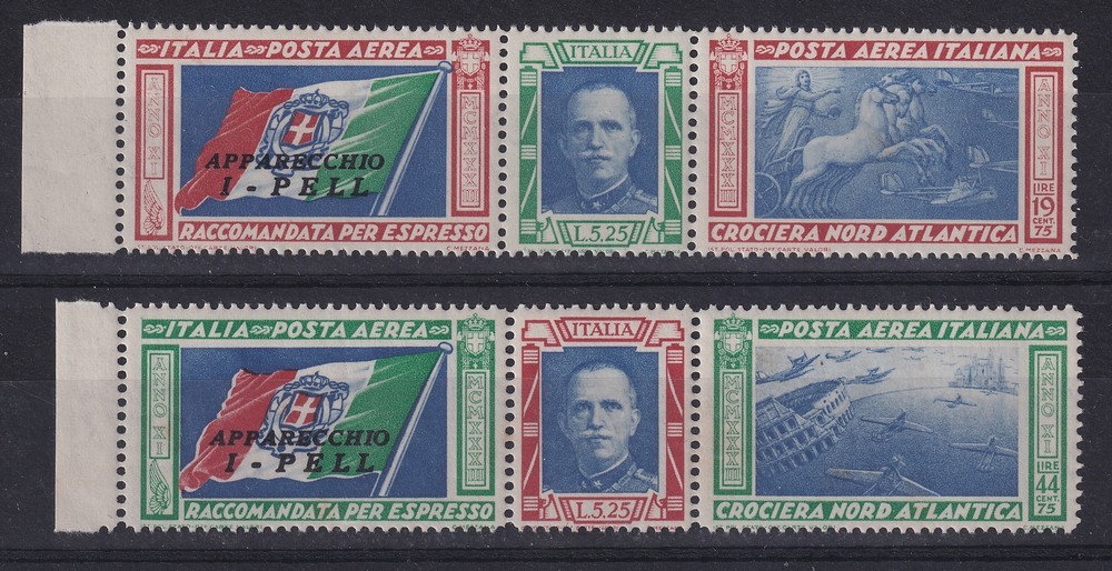 ITALIA Yv. A 048/9 SERIE COMPLETA AEREA DE ESTAMPILLAS NUEVAS CON GOMA TONALIZADA SINO SERIAN MINT, TRIPTICOS PILOTO PELL 250 € en SASSONE 350 €