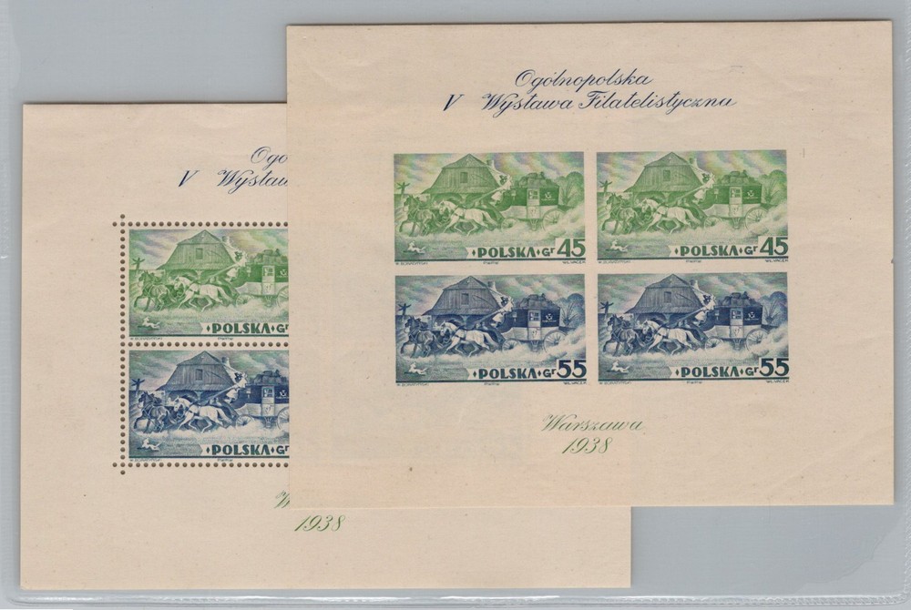 POLONIA 1938 SERIE COMPLETAS DE HOJAS BLOQUES NUEVAS CON GOMA DENTADAS Y SIN DENTAR SUMAMENTE RARAS 210 € !!!