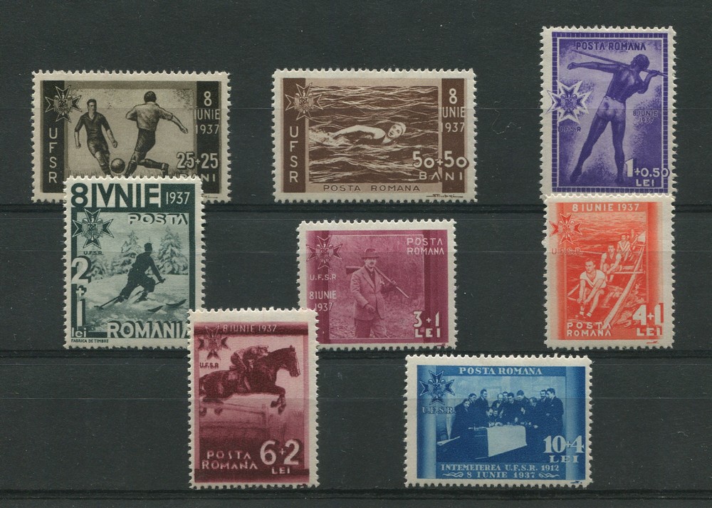 RUMANIA 1937 SERIE COMPLETA DE ESTAMPILLAS DE DEPORTES FUTBOL ETC. NUEVAS CON GOMA DE GRAN CALIDAD CON BASE MUY BAJA