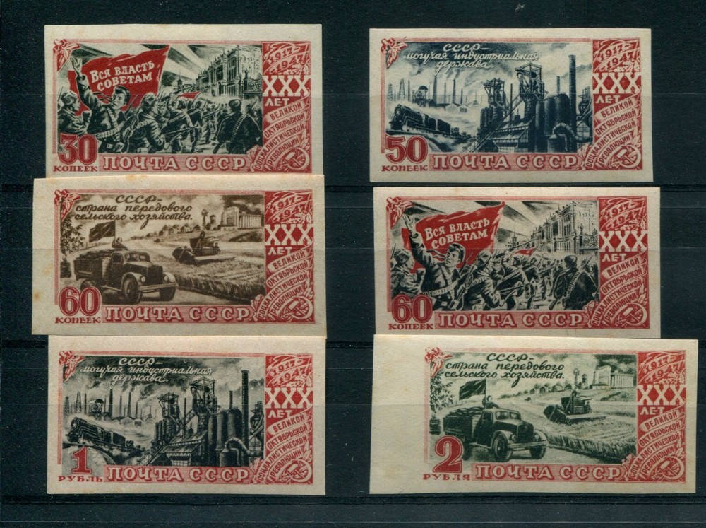 RUSIA 1947 Yv. 1160/5 SERIE COMPLETA DE ESTAMPILLAS NUEVAS CON GOMA sin dentar