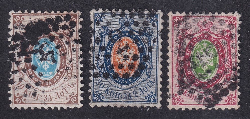 RUSIA 1858 Yv 05/7 SERIE COMPLETA DE ESTAMPILLAS CLASICAS EL VALOR FINAL CON SUAVE ADELGAZAMIENTO MUY RARAS 520 EUROS